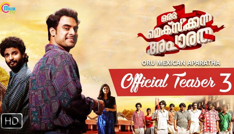 Watch the third Official Teaser of ‘Oru Mexican Aparatha’, a Malayalam film Produced by Anoop Kannan under the banner of Anoop Kannan Stories, Directed by Tom Emmatty and starring Tovino Thomas, Neeraj Madhav, Gayathri Suresh, Roopesh Peethambaran, Sudheer Karamana, Kalabhavan Shajohn, Sudhi Kopa, among others. Muzik247 is the official music label.